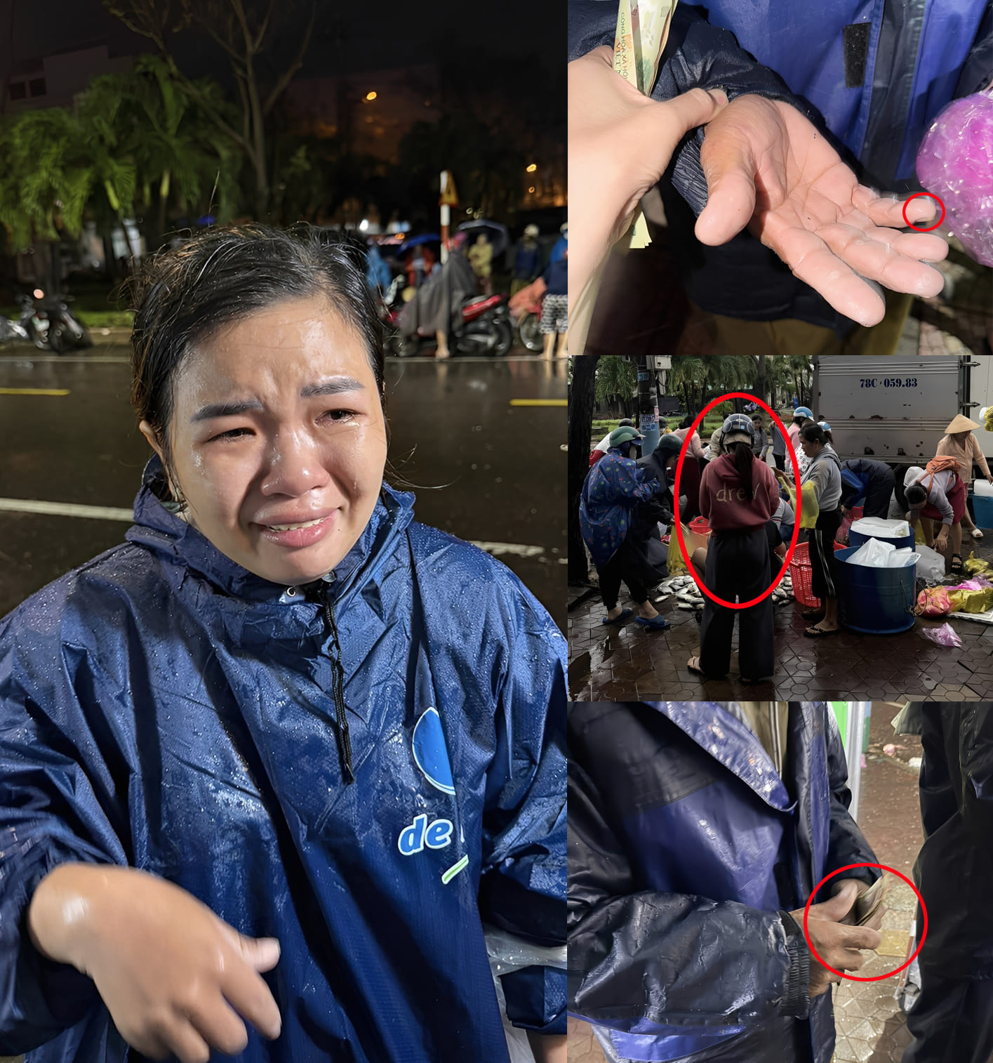 Hình ảnh người phụ nữ bật khóc giữa đêm mưa khiến ai chứng kiến cũng nghẹn lòng.