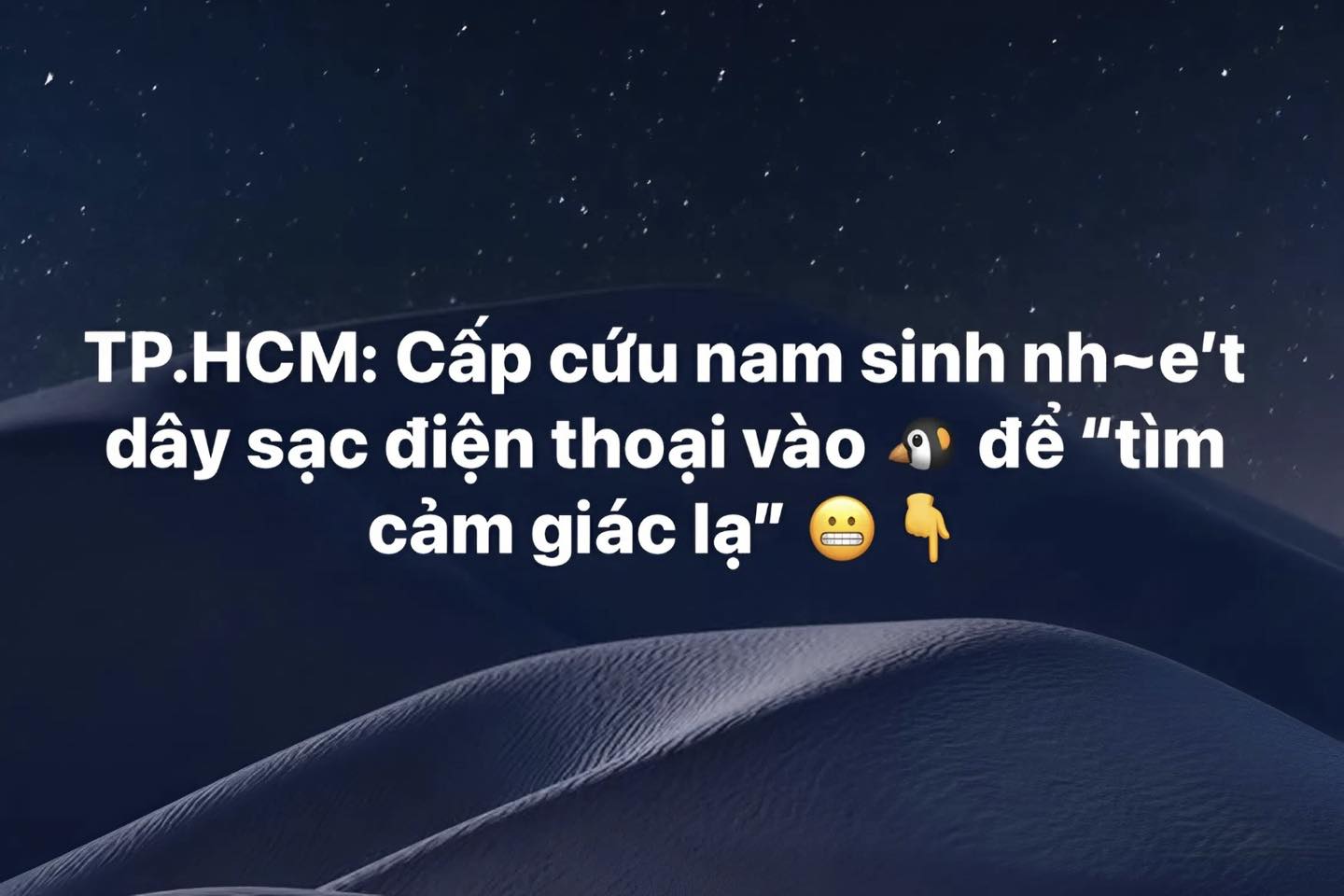 Ngày 7-12, Bệnh viện An Bình (TP.HCM) cho biết vừa mổ khẩn lấy dị vật là dây sạc điện thoại trong bàng quang cho nam sinh 16 tuổi.Theo khai báo, khoảng hai tuần trước khi nhập viện, nam sinh này đã xem một video trên mạng hướng dẫn cách “tạo cảm giác lạ” và làm theo bằng cách đưa dây sạc điện thoại vào niệu đạo.