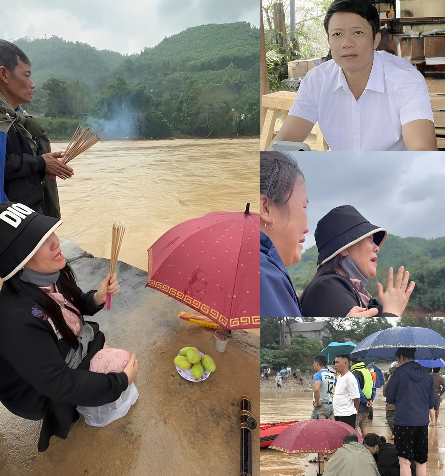 Người vợ của anh Thành có mặt từ sáng sớm, đôi tay run rẩy, mắt đỏ hoe, liên tục réo gọi tên chồng giữa tiếng nước lũ rì rầm. Cả buổi, chị quỳ bên mép nước, chắp tay cầu nguyện, bật khóc đến nghẹn giọng: