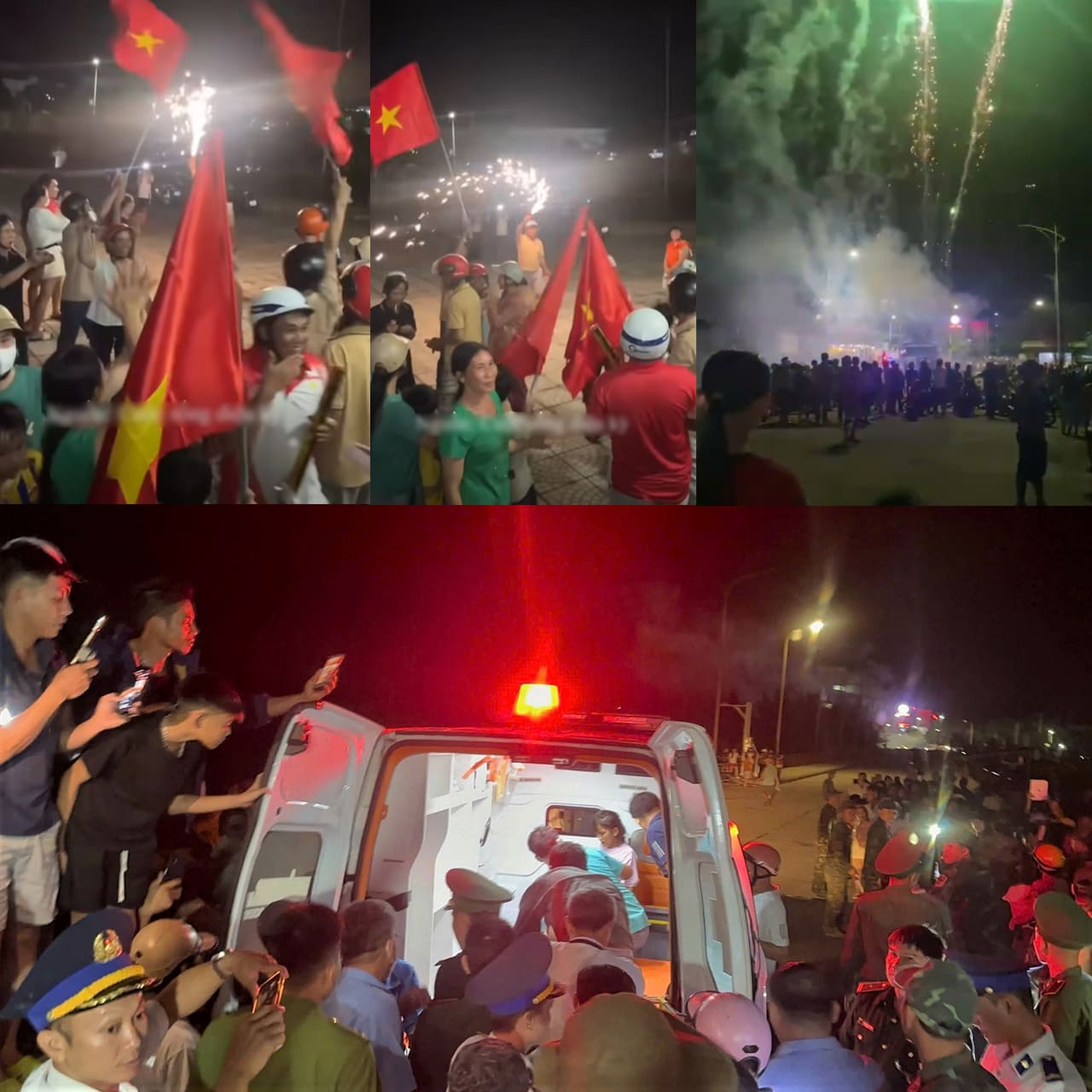 Người dân đảo Lý Sơn Quảng Ngãi vui như Tết, bắn pháo hoa mừng 3 người đàn ông trở về