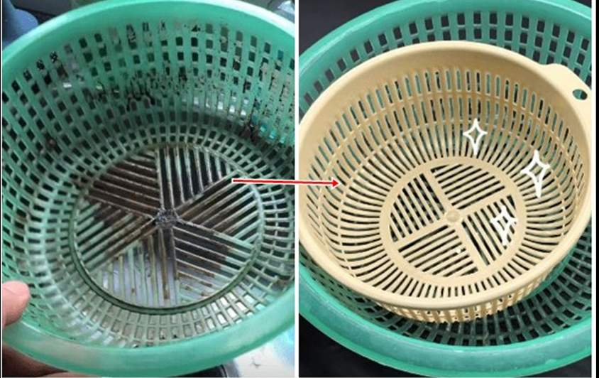 Rổ rau đóng vai trò vô cùng quan trọng trong căn bếp của chúng ta, chúng ta thường sử dụng nó khi cần rửa sạch các loại nguyên liệu trước khi nấu. Trên rổ rau có nhiều lỗ nhỏ, rất tiện lợi khi sử dụng để làm sạch nguyên liệu, nhưng sau một thời gian sử dụng rổ rau sẽ có rất nhiều vết bẩn, vết dầu mỡ và những thứ tương tự bám vào. Nếu chỉ vệ sinh đơn thuần thì hoàn toàn không thể làm sạch được các vết bẩn giữa các lỗ nhỏ này.