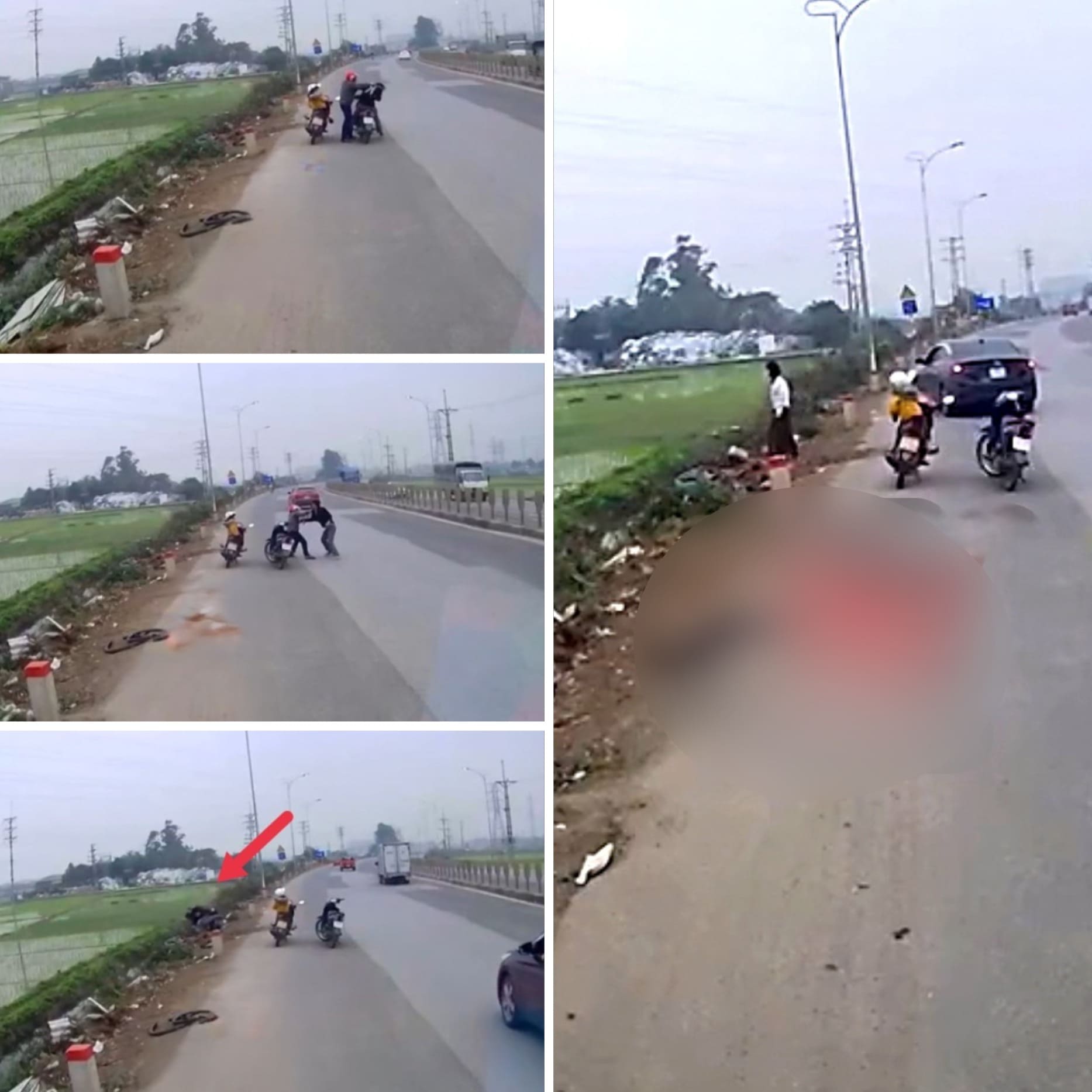 Giây phút một người bị đẩy ngã nhào xuống ruộng lúa đang xanh, tiếng la hét của người đi đường khiến ai cũng phải ngán ngẩm