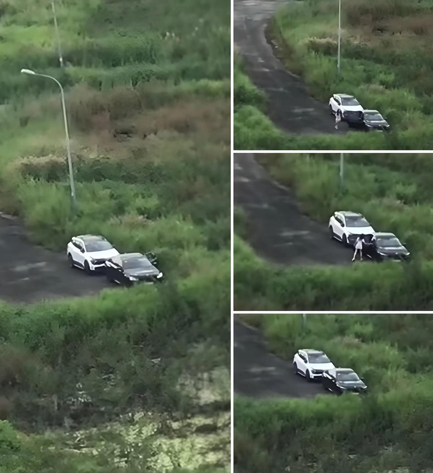 Có hai ô tô đi vào khu đất trống, anh zai đi xe đen mở của xe và xuống ghế sau, em gái xinh đẹp được cho là “cò đất” đi xe trắng phía sau cũng mở cửa xe trắng và vào cửa sau của xe đen và đóng cửa. Để làm hợp đồng cọc ký hợp đồng mua bán..
