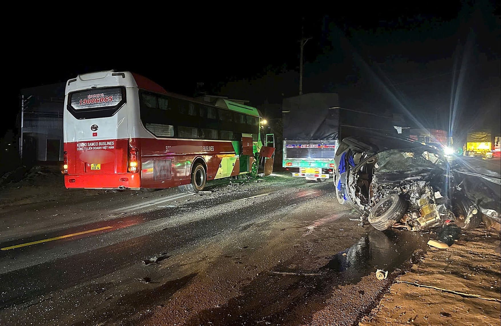 Cú tông mạnh khiến ôtô 7 chỗ biến dạng, hai người ngồi sau tử vong tại chỗ, ông Quảng bị thương được đưa tới Bệnh viện Đăk Nông cấp cứu. Hai xe hư hỏng nặng.
